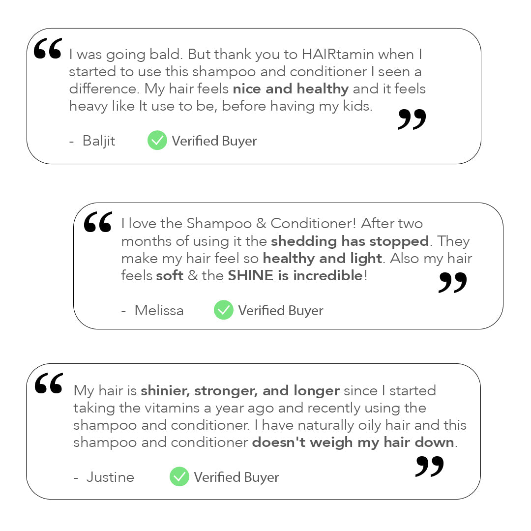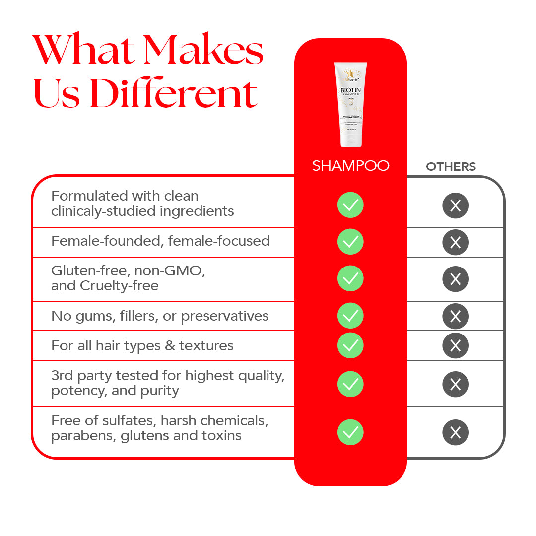HAIRtamin® Biotin & Botanicals Shampoo is a gentle, yet powerful daily formula infused with our iconic Hair Growth Complex including Biotin, Turmeric, Rosemary, Aloe Vera and more, to help support stronger, longer, thicker-looking hair with each wash.